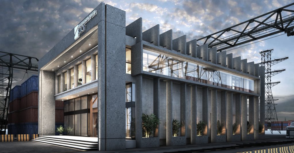Set against the vibrant backdrop of the seaport, this office building’s exterior embodies a fusion of industrial strength and coastal charm. Designed to reflect its maritime surroundings, the structure incorporates durable materials like steel, cement, and glass, with expansive windows framing scenic views of the harbor. The building’s silhouette and clean lines evoke a sense of movement, echoing the flow of ships and water nearby.